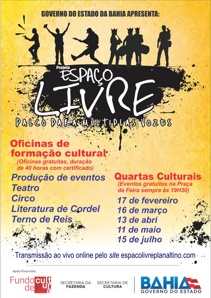 Você é nosso convidado especial, para prestigiar as apresentações da II noite Cultural do Projeto Espaço Livre - Palco para múltiplas vozes. Dia 16 de Março apartir das 19 horas.